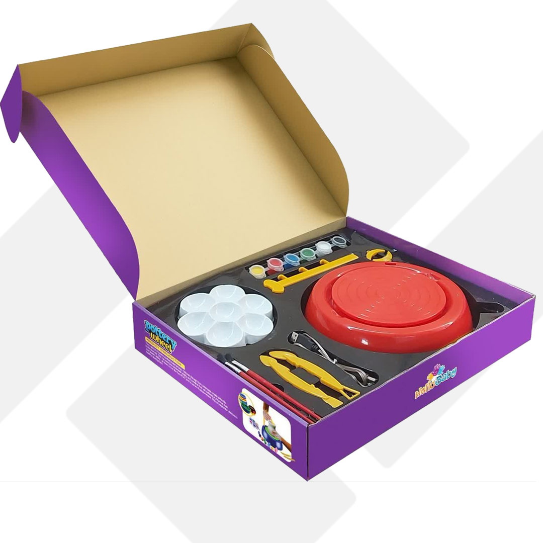 بسته بندی این چرخ سفالگری جعبه ای می باشد تا برای کادو و هدیه دادن گزینه مناسبی باشد.